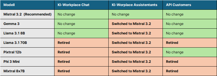 - We have updated the AI models in the Workplace and retired several older models. This makes room for more people to use the successor models simultaneously.