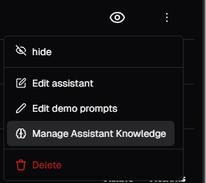 • For the desired assistant, click ⋯ → Manage Assistant Knowledge.